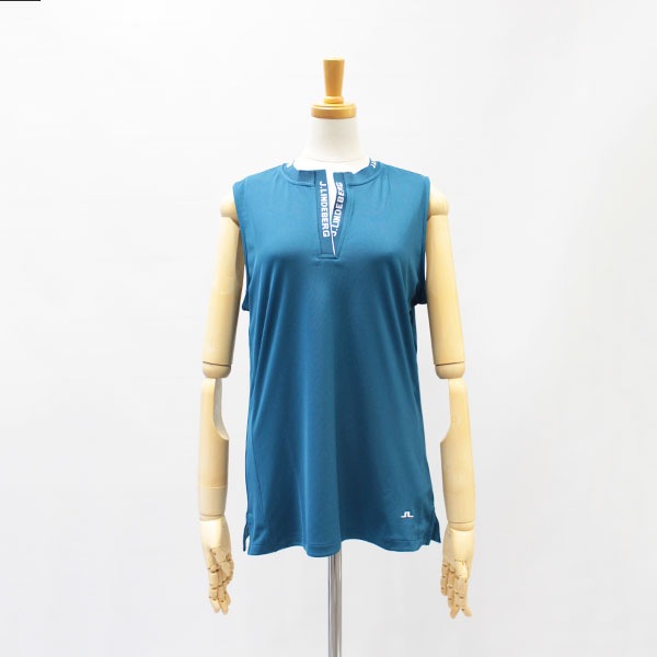 首の開口部にJ.lindebergのロゴが入ったジャカードニットのリブが付いています。
